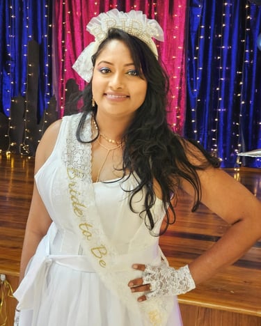 Abbegail Charan, the bride, is the epitome of a perfect blend of her late father, Jaggernath Charan, and her mother, Usha Charan. Being the older sister to her younger brother, she embodies the qualities of both parents. Abbegail possesses her father's kind heart and generous nature, which is beautifully complemented by her mother's passion for life and vivaciousness. She as well followed in her father's footsteps. Her captivating beauty and graceful demeanor instantly mesmerized Sheldon. With a loving and caring personality, Abbegail is brimming with life and love. Additionally, her creativity is bound to create a warm and welcoming home for her and Sheldon. Their journey together promises to be filled with happiness, love, and an abundance of beautiful memories.